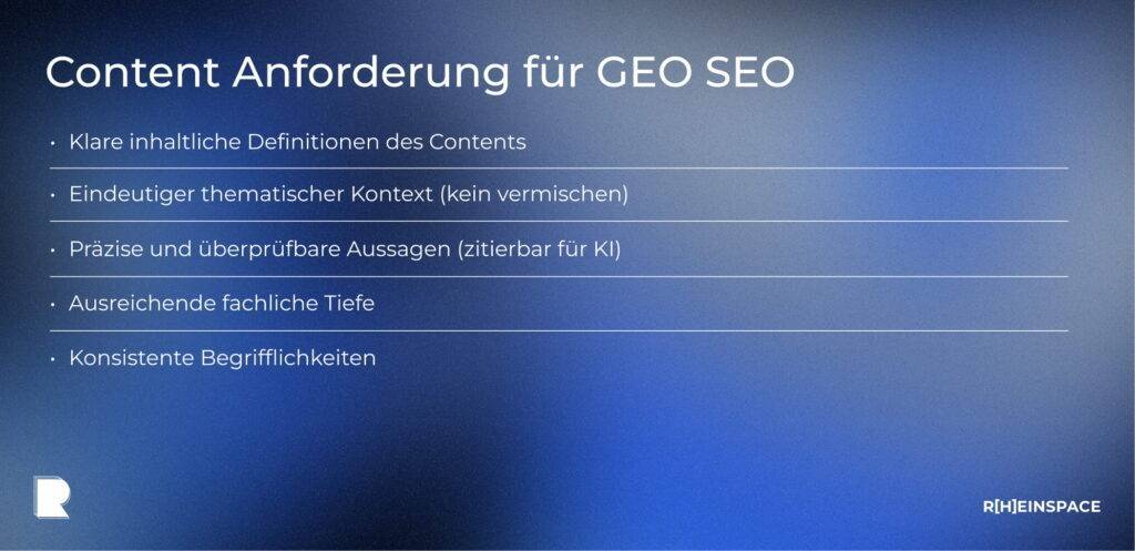 Anforderungen an Inhalte im Kontext von GEO SEO